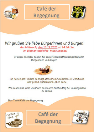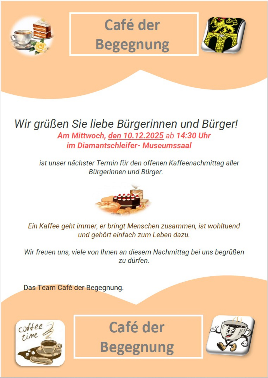 ist unser nächster Termin für den offenen Kaffeenachmittag aller Bürgerinnen und Bürger.