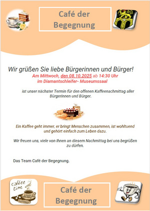 ist unser nächster Termin für den offenen Kaffeenachmittag aller Bürgerinnen und Bürger.