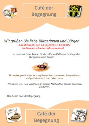 ist unser nächster Termin für den offenen Kaffeenachmittag aller Bürgerinnen und Bürger.